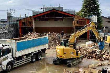 第2体育館の解体してでた瓦礫を分別して、運搬しています。