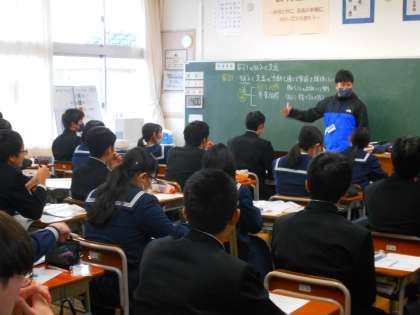 3年・授業風景・その2 公開日 2023/11/29 更新日 2023/11/29 3学年 11月29日(水) 4限 3年生の授業は、真剣そのものです。 先生の話を一言も聞き漏らすまい、という姿勢がみられます。 (写真 上:3年1組 社会「価格にはどのような働きがある?」) (写真 中:3年2組 英語「Unit5 音読と同時に意味を理解しよう」) (写真 下:3年3組 社会「家計の収入と支出」)