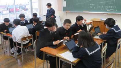 1年・授業風景 公開日 2023/11/30 更新日 2023/11/30 1学年 11月30日(木) 2限 11月最終日、今日も授業がんばっています! (写真 上:1年1組 国語「蓬莱の玉の枝」) (写真 中:1年2組 社会「ヨーロッパ州」) (写真 下:1年3組 総合「職業調べ」)
