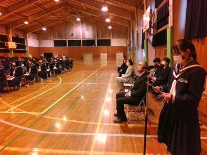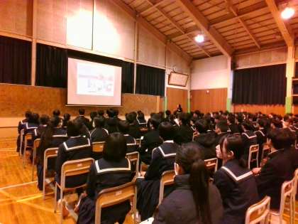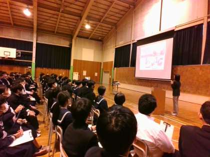 2年・産婦人科医による指導講話 公開日 2023/11/30 更新日 2023/11/30 2学年 11月30日(木) 5,6限 2年生は、産婦人科医の飴谷先生を講師とお招きして、体育館で講話を聞きました。 性に関して、いろいろな考え方があることや、妊娠や出産、性感染症等の性に関する様々なトラブルについて、とても大事なことを学びました。 生徒たちは時折メモを取りながら、真剣に話を聞いていました。