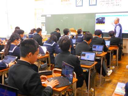 3年・授業風景・その1 公開日 2023/12/01 更新日 2023/12/01 3学年 12月1日(金) 4限 3年生は、テストの振り返りや古典の暗唱練習、プログラミングの学習を行い、時間を大切にして過ごしています。 (写真 上:3年1組 社会「テスト返し」) (写真 中:3年2組 国語「夏草」) (写真 下:3年3組 技術 「マイクロソフトメイクコードを使ったプログラミング」)