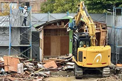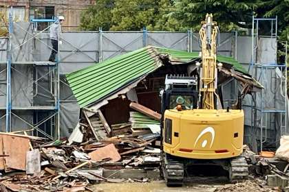 今日(12/1)の工事速報・その3 公開日 2023/12/01 更新日 2023/12/04 山室中学校のページ 12月1日(金) 15:00 第2体育館のステージ付近の建屋の取り壊しがついに終わりました。 ちなみに、…… 第2体育館は、昭和30年5月に落成され、昭和57年12月に移設されたものです。