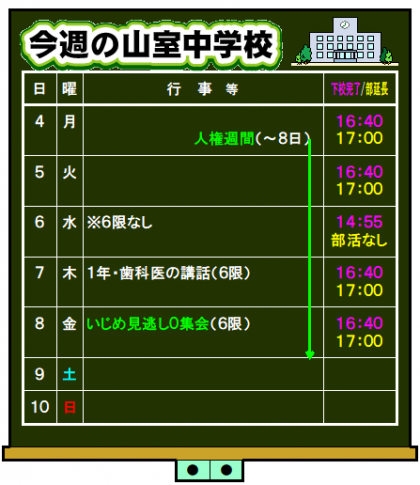 8日(金)6限には、人権集会「いじめ見逃し0集会」も行います。