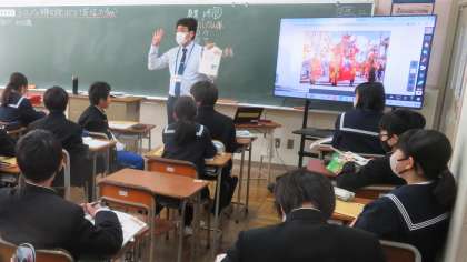 (写真 下:1年5組 社会「ヨーロッパ州」)
