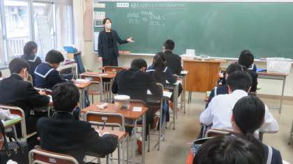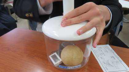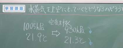 2年・理科・雲のでき方 公開日 2023/12/07 更新日 2023/12/07 2学年 12月7日(木) 3限 2年2組の理科は、気圧の低いところで起こる変化を調べました。 簡易真空容器の中に、気圧計、デジタル温度計、テニスボールを入れ、容器の中の空気を抜いて、変化を調べました。(写真:上、中) テニスボールはパンパンに膨張し、温度も気圧も下がりました。 ここに雲ができるヒントが隠れているんですね!