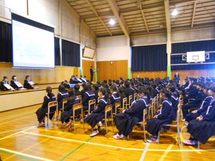 山中いじめ見逃し0集会・その5 公開日 2023/12/08 更新日 2023/12/08 生徒会活動 12月8日(金) 6限 集会中の生徒の様子です。 執行部の説明に、真剣に耳を傾けています。 (写真 上:1年生の様子 下:2、3年生の様子)