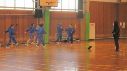 2年2,3組女子の体育は、体育館でダンスをしていました。