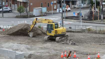 正門付近の新しい花壇をつくる準備が進んでいます。