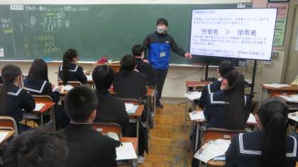 3年・授業風景 公開日 2023/12/11 更新日 2023/12/11 3学年 12月11日(月) 3限 12月第3週が始まりました。 2学期もあと2週間ですが、学習の基本はいつも「授業」です! (写真 上:3年3組 社会「労働者と使用者」) (写真 中:3年4組 社会「金融の役割」) (写真 下:3年5組 英語「日本文化を紹介しよう」)