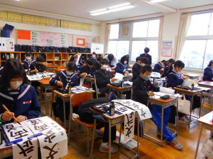 作図のポイントを聞いたり、友達と教え合ったり、黙々と書道に打ち込んだりと、1年生の授業では、意欲的に活動する姿がみられます。
