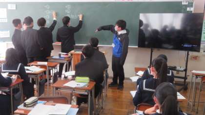 3年・授業風景 公開日 2023/12/14 更新日 2023/12/14 3学年 12月14日(木) 4限 授業に落ち着いて取り組んでいます。 (写真 上:3年1組 社会「景気の変動」) (写真 中:3年2組 書写「穀斎交流」) (写真 下:3年3組 社会「公民クイズ」)