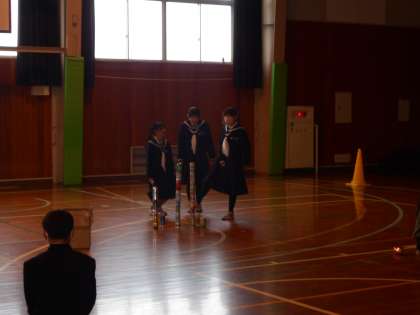 クラス対抗で、空き缶つみゲーム、借り物競争、ドッジボール対決を行っています。