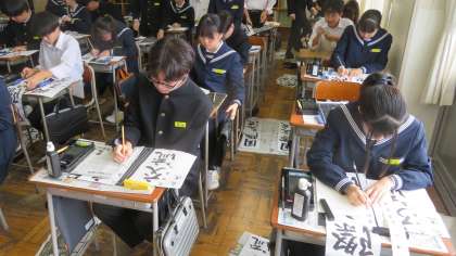 3年・授業風景 公開日 2023/12/18 更新日 2023/12/18 3学年 12月18日(月) 3限 2学期最終週 3年生は、いつも授業を大切にしています! (写真 上:3年1組 数学「円周角」) (写真 下:3年4組 書写「国際交流」)