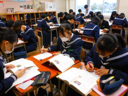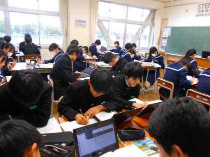 (写真 下:2年5組 社会「東海地方の産業の特徴」