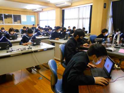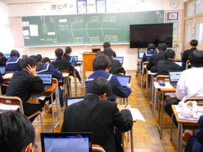 技術と家庭の授業では、それぞれがクロムブックを使いながら、課題に熱心に取り組んでいます。