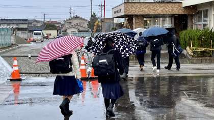 朝の登校風景 公開日 2023/12/21 更新日 2023/12/21 山室中学校のページ 12月21日(木) 7:55 気温は2度、雨から雪に変わりました。 生徒が登校しています。 このあと、どれくらいの積雪になるのか心配ですね。