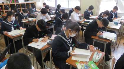 (写真 下:2年5組 社会「中部地方のまとめ」)
