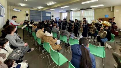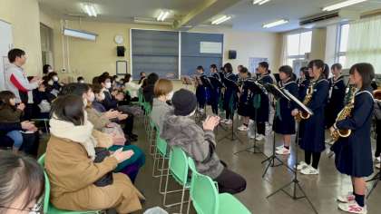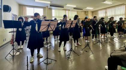 吹奏楽部・ミニクリスマス会・その1 公開日 2023/12/23 更新日 2023/12/23 部活動 12月23日(土) AM 冬休み・1日目です。 吹奏楽部は、ミニクリスマス会を開催し、たくさんの保護者の方に来ていただきました。 保護者のの方には演奏を聞いていただき、生徒たちも日頃の練習の成果を見てもらえたと思います。