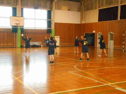 体育館は寒いですが、体を入念にほぐしてから部活動を行っています。