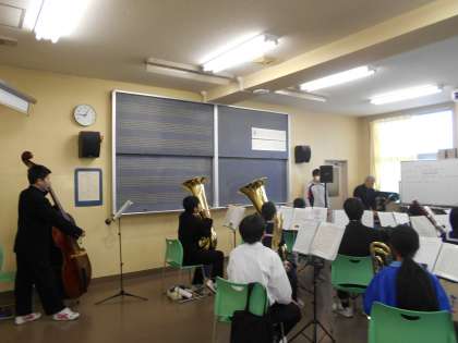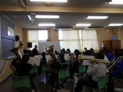 吹奏楽部は、音楽室で練習に向けて音出しをしています。