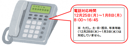 冬休み期間中の電話対応時間を次のとおり変更します。