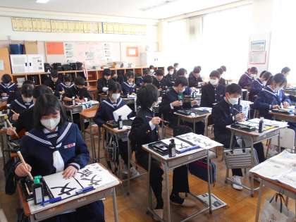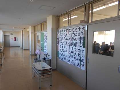 (写真 上:1年4組  中:1年5組  下:1年生廊下)