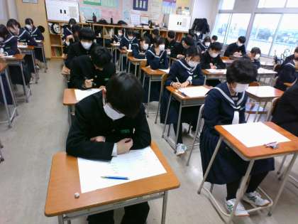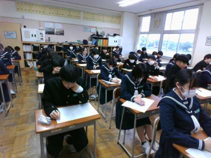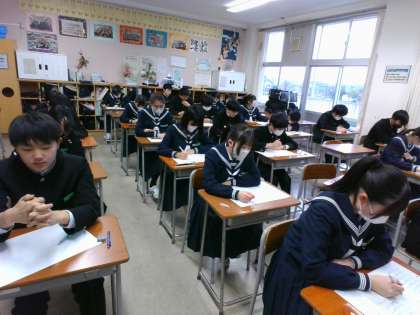 生徒たちはテキストを頑張った成果を発揮し、テストに真剣に取り組んでいました。