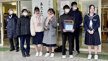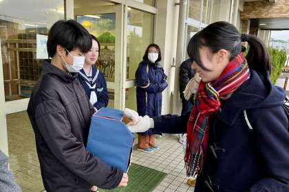 山室中学校生徒会は、今朝から義援金活動を開始しました。