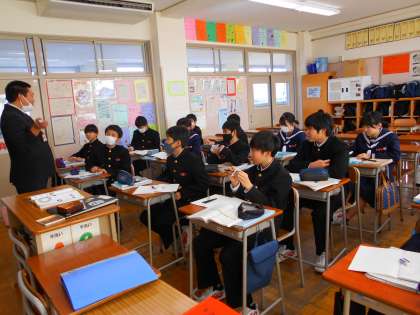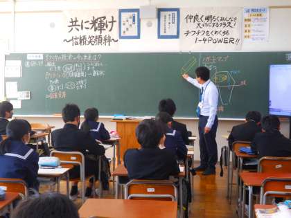 1年・授業風景・その2 公開日 2024/01/11 更新日 2024/01/11 1学年 1月11日(木) 4限 1年生の授業では、アフリカ経済についてノートに丁寧にまとめたり、おうぎ形の学習内容を繰り返し練習したりしています。 (写真 上:1年4組 社会「アフリカ経済の今と未来は」) (写真 中、下:1年5組 数学 「おうぎ形の面積や弧の長さを求めよう」)