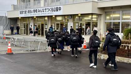 生徒が元気に登校してきました。