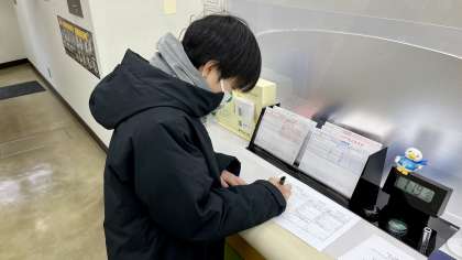 (写真 上:振込用紙を記入する生徒会長)
