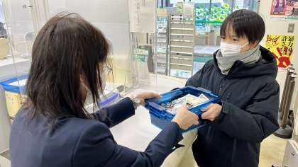 本日昼休みに、生徒会長が富山第一銀行山室支店に出向き、「富山県災害義援金 日赤富山県支部」に振り込みました。