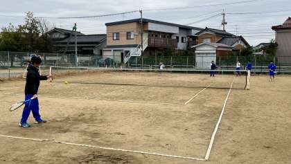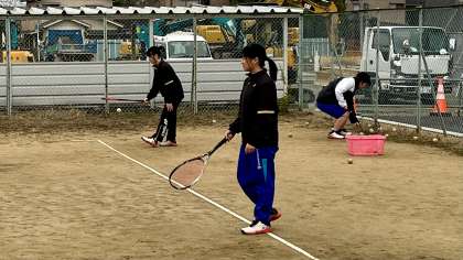 男女ソフトとテニス部が、テニスコートで活動しています。