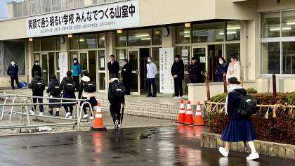 生徒が元気に登校してきました。(写真)