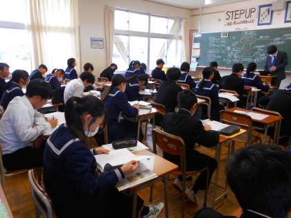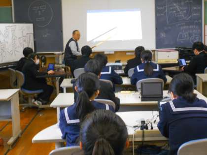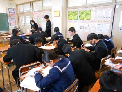 2年・授業風景 公開日 2024/01/23 更新日 2024/01/23 2学年 1月23日(火) 5限 技術では、先生から示された問題に、興味深く挑んでいます。 社会では、学習した内容を一人一人が真剣にまとめています。 国語では、友達と教え合いながら、プリント学習に取り組んでいます。 (写真 上:2年1組 技術「ベーシックのプログラミング」) (写真 中:2年3組 社会「幕末の流れをまとめよう」) (写真 下:2年5組 国語「付属語」)