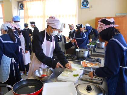 家庭科では、ハンバーグに入れる玉ねぎのみじん切りに挑戦中です。