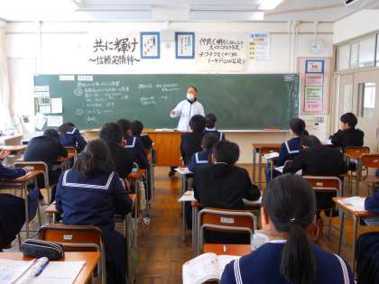 (写真 中:1年4組 保健「運動が心身に与える影響」)