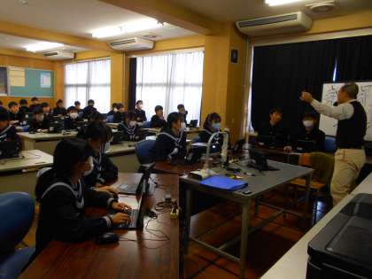 (写真 下:1年5組 技術「パワーポイントのアニメーション」)