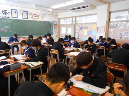 理科では、友達と教え合いながらプリント学習に励んでいます。