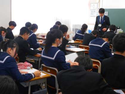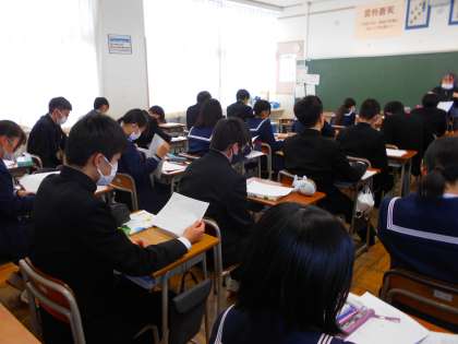 3年・授業風景・その1 公開日 2024/01/25 更新日 2024/01/25 3学年 1月25日(木) 6限 私立高校一般入試に向けて、テストの振り返りや過去の入試問題への挑戦等、準備を進める3年生です。 (写真 上:3年1組 国語「実力テストの振り返り」) (写真 中:3年2組 数学「いろいろな問題を考えよう」) (写真 下:3年3組 英語「入試の過去問に挑戦」)