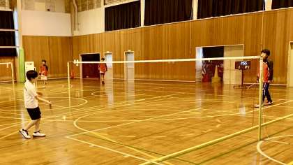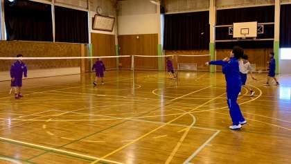男子バドミントン部は、相手とシャトルの両方を見ながら、相手のいないところを狙って打つ練習をしています。