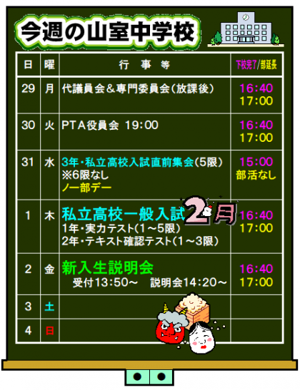 いよいよ2月1日(木)は、「私立高校一般入試」です。