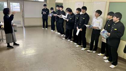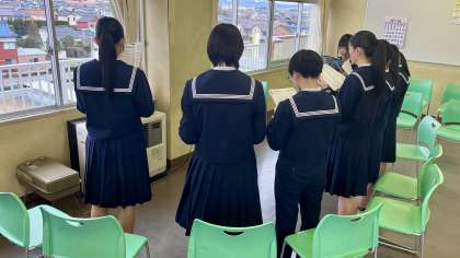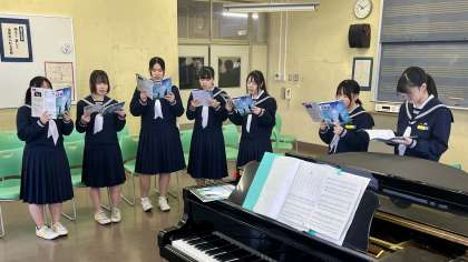 3年4組の音楽は、卒業式の歌「旅立ちの日に」の練習をしていました。