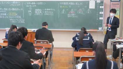 3年・授業風景 公開日 2024/02/05 更新日 2024/02/05 3学年 2月5日(月) 4限 2月2週目に入り、教科書は終盤に入りました。 授業への集中力が高い3年生です。 (写真 上:3年2組 英語「A Graduation Gift from Steve Jobs.」) (写真 中:3年3組 理科「生態系」) (写真 下:3年4組 数学「標本調査」)