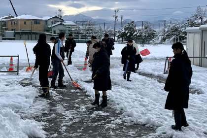 今朝も除雪部隊が出動しました! 公開日 2024/02/06 更新日 2024/02/06 山室中学校のページ 2月6日(火) 7:55 気温は3度、天気はくもり。 今朝も、除雪当番の3年1組とボランティアの生徒が、除雪をしてくれました。 朝早くから、どうもありがとう!