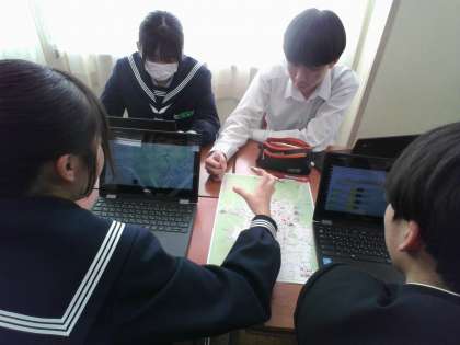 また、クロムブックを使って、衛星写真で確認する班や路線図を調べる班もあり、デジタルも使いこなしていました。