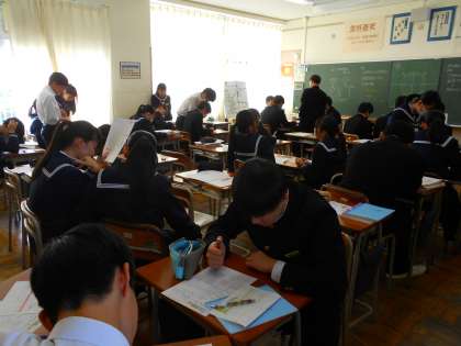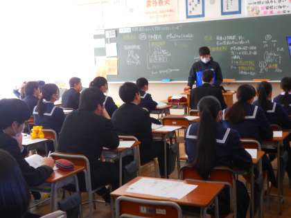 3年・授業風景 公開日 2024/02/07 更新日 2024/02/07 3学年 2月7日(水) 4限 中学校生活最後の定期考査や入試が近づいてきています。 3年生は、時間を大切にしながら、学習に打ち込んでいます。 (写真 上:3年2組 英語「A Graduation Gift from Jobs」) (写真 中:3年3組 社会 「国際連合はどんな役割を果たしているか」) (写真 下:3年4組 数学「入試に向けて練習」)