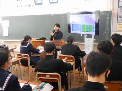 プログラミングなど仕事の楽しさについて生徒は熱心に聞いていました。