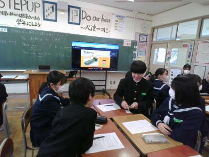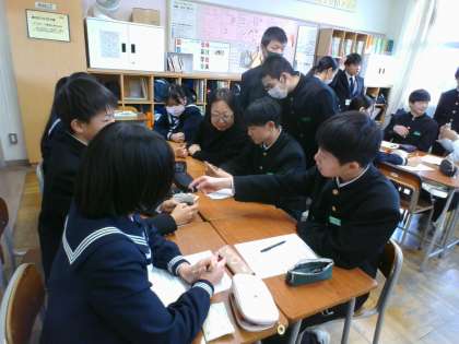 生徒たちは班を2つに分けて、交渉ゲームを行いました。