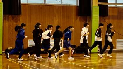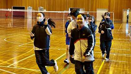 体育館は、男子ハンドボール部が終わり、女子バドミントン部に交替しました。